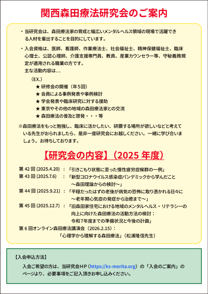 演題:『心理学から理解する森田療法』