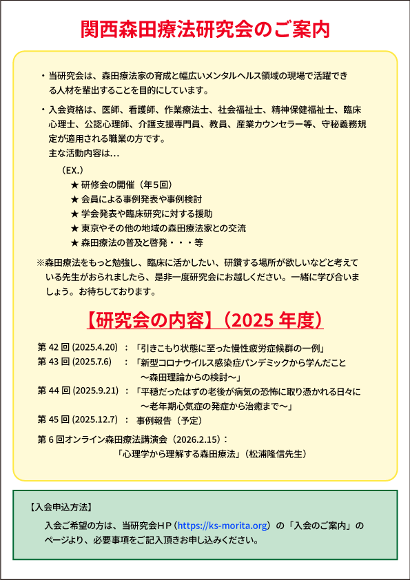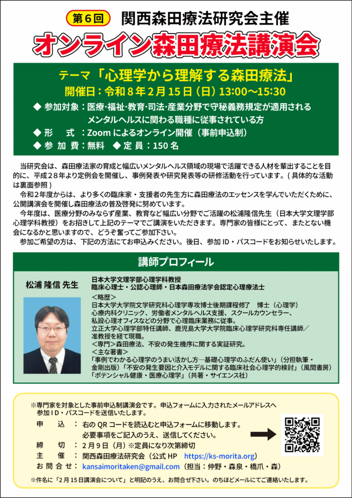 ●令和8年2月15日(日) 第6回森田療法講演会(Zoomミーティング形式)
